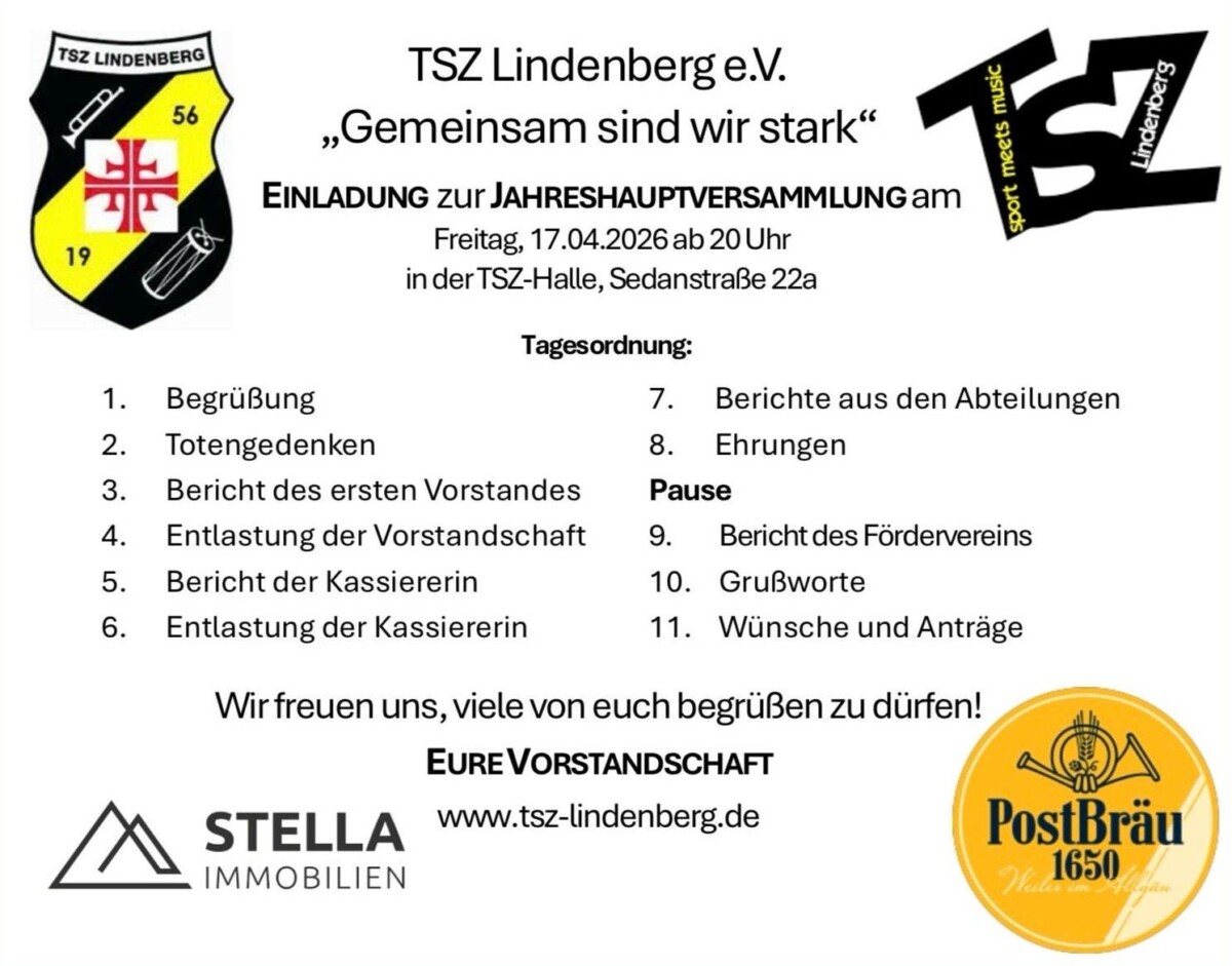 Einladung zur Jahreshauptversammlung des TSZ 2026